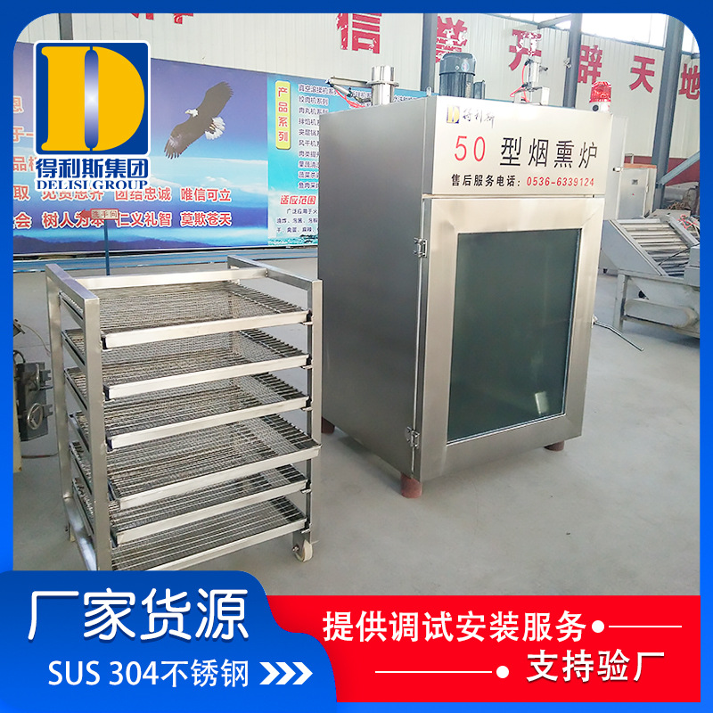 全自動煙熏爐的發煙系統: 外置式木粒、木屑發煙系統,不僅使產品產生果木香氣,而且可以使產品熏成由淺入深的金黃色。外置全自動煙熏爐分體式糖爐發煙系統,可熏制傳統的中式產品,產生糖熏味道,并且顏色可以控制,深可以成為棗紅色。兩種發煙系統同時使用能產生煙熏香氣和顏色。門上木粒發煙系統,采用世界上先 進的內循環發煙工藝,低氧狀態發煙,縮短煙道長度,降低能耗,減少設備占地面積。材質、保溫 箱體結構以單車為單元,可以拼裝成不同的組合。材質采用進口SUS304不銹鋼拉絲扳。保溫層采用進口聚氨酯保溫材料,耐高溫一次成型,保溫性能好。控制元器件 PLC、人機界面、電磁閥等關鍵元器件采用進口產品。加熱方式 采用外接蒸汽加熱或電加熱方式。配備在線清洗系統。門鎖和門合頁及密封條設計合理,密封嚴密,操作方便。生熟區門互鎖,區域隔離,符合HACCP要求。